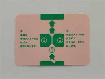 15歳以上:表面のライナー(プラスチックフィルム)をはがし、1日2回を限度として患部に貼付してください